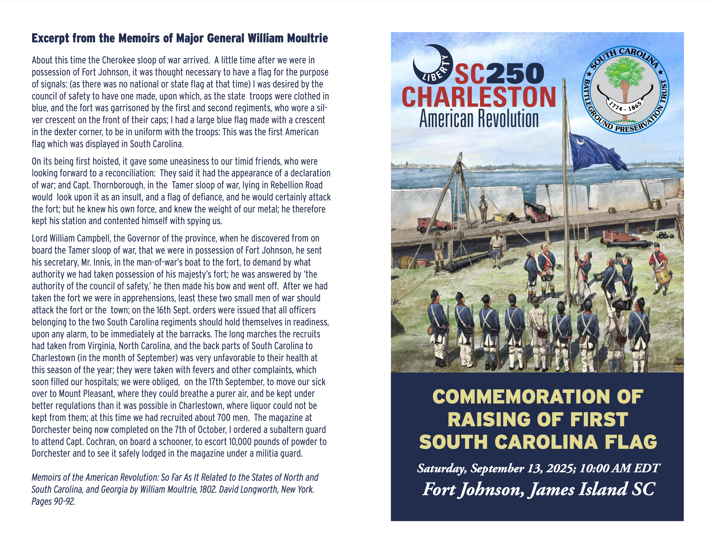 On Saturday, September 13, 2025 we commemorated the first raising of the South Carolina flag at historic Fort Johnson.