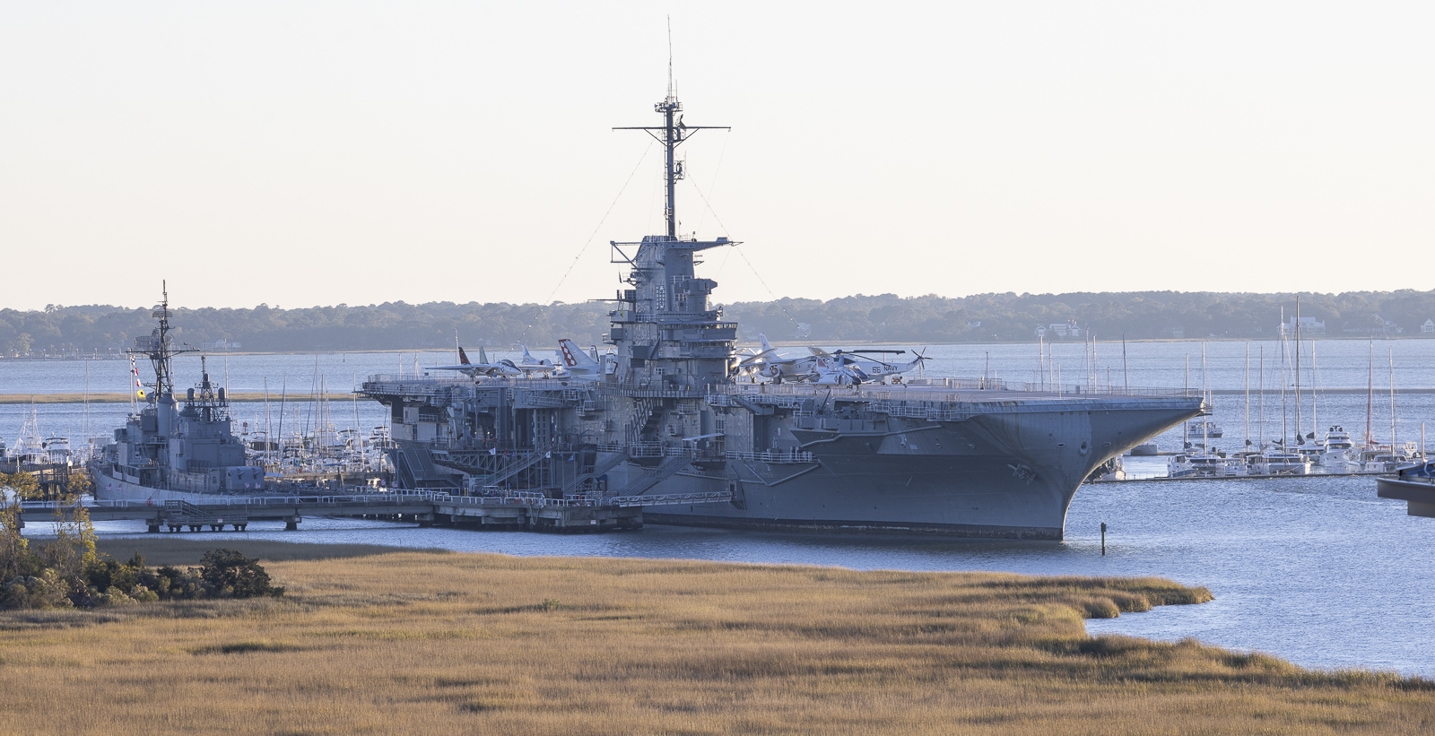 Ultimately, the records of this diverse cast of characters “behind-the-scenes” is what makes the story of the Battle of Hog Island, and the subsequent maritime engagements along South Carolina’s coast so compelling. Commemorating this engagement–and the subsequent seven years of maritime battles throughout our state–not only sheds light on the oft-ignored maritime theatre of South Carolina’s Revolutionary experience, but reminds us of the continued importance of the sea to our state in the present day. It is no coincidence that Charleston serves as one of the largest container shipping ports in our nation, or that both the U.S. Navy and U.S. Coast Guard alike maintain an active presence in the Palmetto State. Perhaps the most ironic legacy of the Battle of Hog Island, and one that would certainly have amused William Henry Drayton himself, is the presence of the WWII aircraft carrier U.S.S. Yorktown and destroyer U.S.S. Laffey on the site of that maritime skirmish!