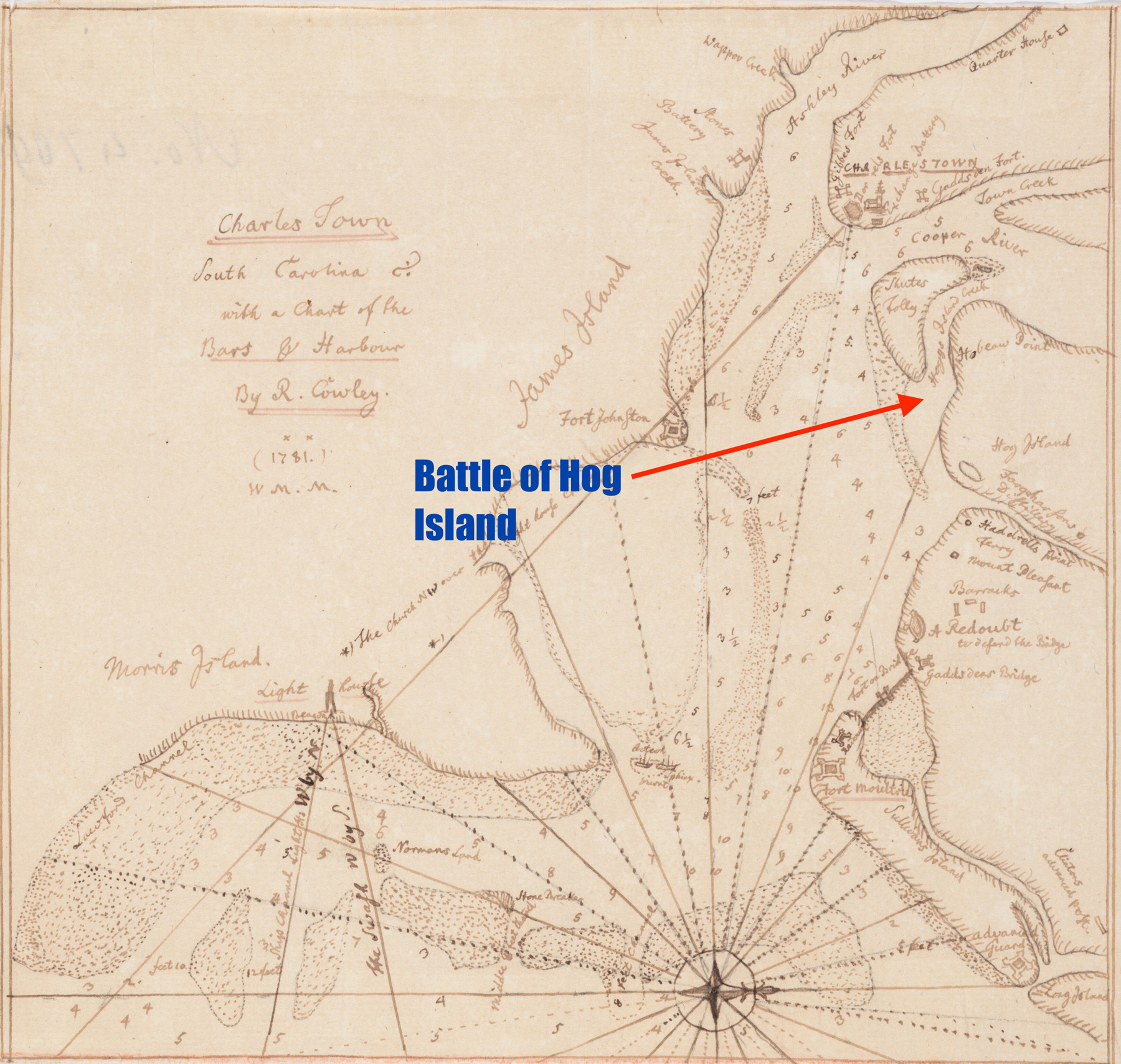 The impending arrival of St. Lawrence provides the immediate context for the Battle of Hog Island Creek. As early as October, the president of the Provincial Congress, William Henry Drayton, and his colleague Thomas Heyward, Jr. had made plans to obstruct this creek–more appropriately called a channel–between Hog and Shutes Folly Islands. They realized that three British warships could easily use the sheltered channel to enter the heart of Charles Town harbor and bombard the city, all the while evading the gun range of American-held Fort Johnson to the southwest. On 10 November, Drayton reversed previous orders to Tufts to patrol near Wappoo Creek to the west of Charles Town, and ordered him to lead his crew–along with a detachment of infantrymen acting as marines sent by Colonel William Moultrie–to oversee the sinking of various hulks in Hog Island Creek.